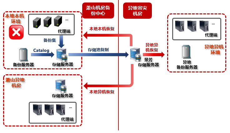 2、同時(shí)在景芳、蕭山備份機(jī)房部署異地存儲(chǔ)池,實(shí)現(xiàn)數(shù)據(jù)異地災(zāi)備,避免災(zāi)難性事件造成本地?cái)?shù)據(jù)的丟失;