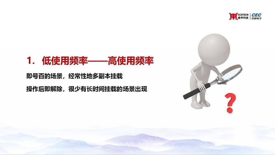 我們來看一下這個使用頻率啊,比如說號百的場景,他這個場景都不是一些發(fā)生災難的時候才會有的場景,而是日常工作中就會產(chǎn)生的場景,所以他每天的工作中都會發(fā)生這種需要副本掛載的事情。然后在如此高頻率的使用情況下,他遇到的問題一定會更多。操作后,他的這個掛載在操作以后就會很快的去解除掉啊,很少會有這種長時間要掛一兩個月的這種場景出現(xiàn)。