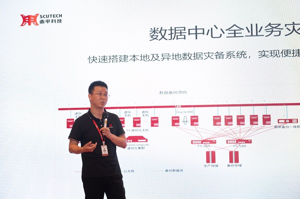 隨后,鼎甲西北區技術總監徐煒介紹了鼎甲的最新產品解決方案,隆重推出適應云邊端場景的應用級容災產品組合,通過滿足混合云復雜環境一鍵容災切換和實現秒級 RPO、分鐘級 RTO 的整機應急接管,助力用戶可靠的業務連續。其次,在產品升級方面,鼎甲的王牌產品DBackup在兼容適配、備份效率、應急能力、云化適應和運維能力上,一如既往地實現更多突破:首家支持達夢多集群備份,支持集群架構種類為國內之最,幫助用戶管理化繁為簡。首個針對重刪數據的分布式集群,備份效率提升達50%以上,無懼數據增長。在新功能上,鼎甲新增包括 Oracle 應急與生產數據一鍵回遷、DBackup 元數據云端自保護等功能,針對 VMware 備份也實現進一步優化,為客戶提供更成熟、更易管、更云化的極致體驗。