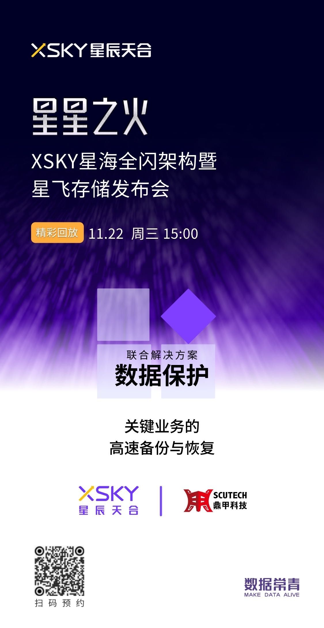 11月22日,XSKY “星星之火”星海全閃架構暨星飛存儲發布會將于下午15:00精彩來襲,促進全行業迎接“全數據全閃存時代”,敬請期待!