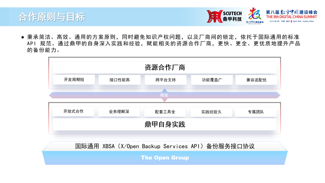 4 月 29 日,在第八屆數字中國建設峰會期間,鼎甲科技正式發布“開放式備份項目”(SOBP,Scutech Open Backup Program)。該項目率先以國際標準化備份服務接口為基礎,聯合應用廠商與備份軟件廠商共同推廣該標準協議的使用。數字中國建設峰會是我國數字經濟領域規格最高、影響力最廣的國家級平臺,是展示數字中國建設成果、推動產業數字化轉型的重要窗口。鼎甲科技在此國家級峰會上,以創新成果亮相,踐行“為國產生態構建堅實的數據保護底座”的使命,加速信創產業邁向高效、協同、集約、可持續發展的新階段。