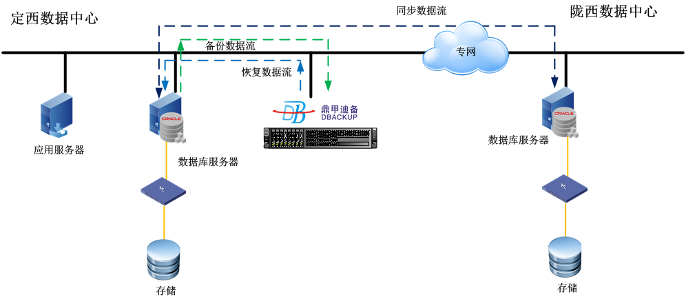 在甘肅省定西市住房公積金管理中心定西數據中心部署鼎甲迪備備份容災軟件,備份服務器及存儲介質由一臺IBM x86服務器組成,針對基于AIX小型機上的Oracle數據庫進行自動的實時的數據庫保護,Oracle數據庫進行全面的全量、增量的自動備份,通過壓縮、重刪提高數據備份效率;隴西數據中心部署與定西機房一致的Oracle數據庫環境,通過鼎甲迪備備份容災系統與定西數據中心Oracle數據庫形成數據庫同步系統,將定西數據中心Oracle數據庫同步到隴西數據中心Oracle數據庫,實現備份數據的異地災備,避免災難性事件造成本地備份數據丟失的風險。